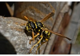Feldwespe bei Holz hobeln